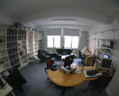 Die Bilder geben leider keinen kompletten Eindruck. Ungünstigerweise ragten im alten Büro die Arbeitstische mitten in den Raum, jetzt sind sie am Rand angeordnet, so dass in der Mitte viel Platz und Fläche entstanden ist.
