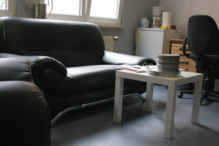 Ebenso ist es uns endlich möglich, durch den gewonnen Platz, Besucher, Sponsoren oder Journalisten direkt im Haus zu empfangen und bei Kaffee und Kuchen zu informieren. Eigens dafür gibt es eine kleine Sitzecke unter dem Fenster.