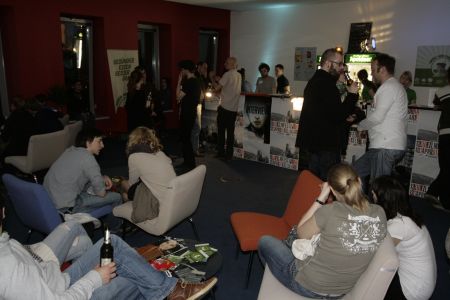 Ein „Tanzvergnügen“ (Eintritt frei) mit Musik vom Label Giegling aus Weimar schließt sich ab ca. 23.30 Uhr an. Hier ein paar Impressionen von der lebhaften, vergangenen Party-Nacht mit „Night Architecture“, die gegen 04.30 Uhr ihr Ende fand. Reges Treiben herrschte an der Bar, wo ein kompetentes Team u.a. den eigens kreierten, fruchtig-herben „cellulart 12“-Cocktail nach Geheimrezeptur zaubert…