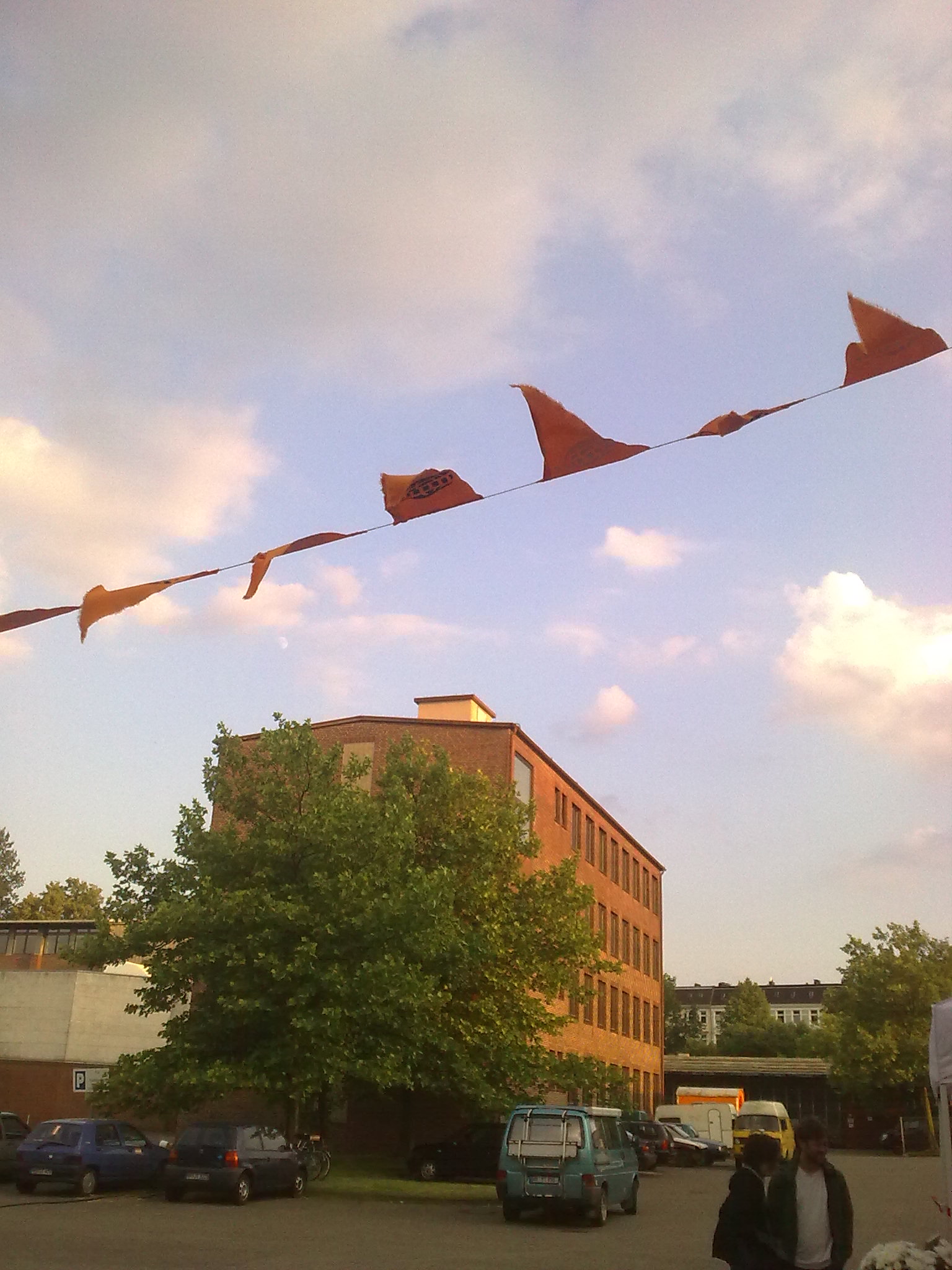 Jeder Abend endete mit rauschenden Parties und mehreren musikalischen Live-Acts und DJs. Zusätzlich wurde von Freitag- bis Sonntagnacht im Keller des riesigen Gebäudes eine Horrorfilmrolle mit dem bezeichnenden Titel „Das Grauen kommt um Mitternacht“ für alle Gruselfreunde angeboten, die sich perfekt in die ohnehin angsteinflößende Atmosphäre des weitläufigen, dunklen Gemäuers einpasste. Im Innenhof gab es am Wochenende Open Air-Screenings mit verschiedenen Schwerpunkten (einer, nämlich „Film, Wurst und Bier“, war mir spontan ganz besonders sympathisch). Der Innenhof wurde zur Zubereitung von Grillgut und sogar Pizza genutzt und sorgte mit gefühlten 50 Bierbänken und Liegestühlen zudem für genug Sitzplätze. Zudem hatte allein die „Kantine“ im 2. OG, in der am Sonntagabend auch die Preisverleihung stattfand, eine Größe, die sie wohl für viele Kurzfilmfestivals zu einem mehr als akzeptablen Hauptspielort machen würde.